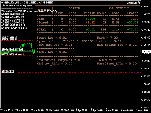 - PartialCloseIfProfit_ATRs – partial closure. Close profitable orders if quite 3 orders within one set are open within the same direction and therefore the price exceeded > PartialCloseIfProfit_ATRs.